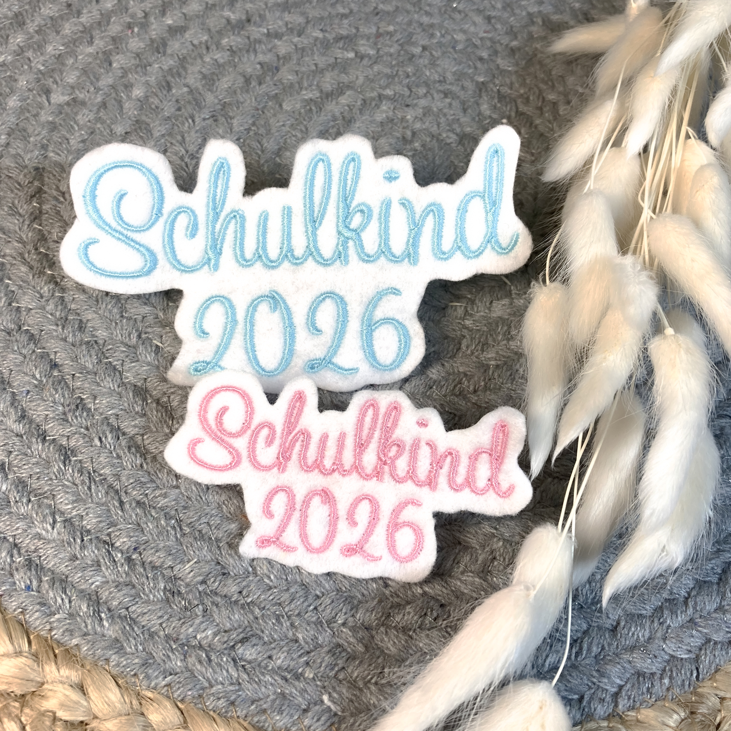 ♥ gestickte Applikation Schulkind 2026 auf weißem Filz ♥