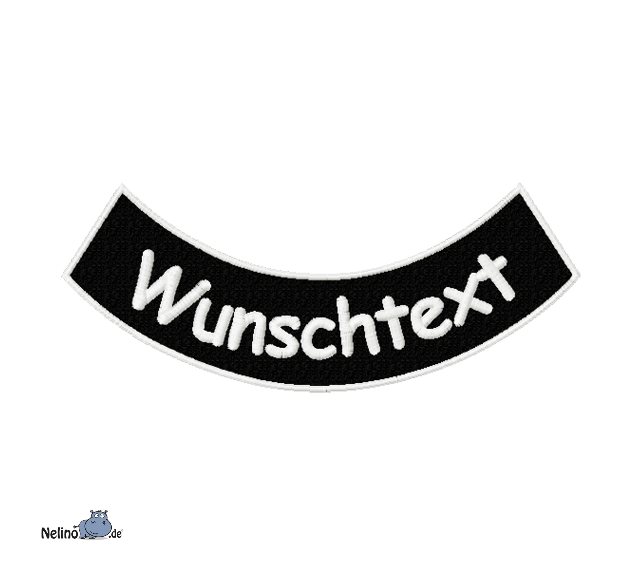 bestickter Aufnäher Bogen unten Wunschtext & Wunschgröße auf schwarzen Untergrundstoff