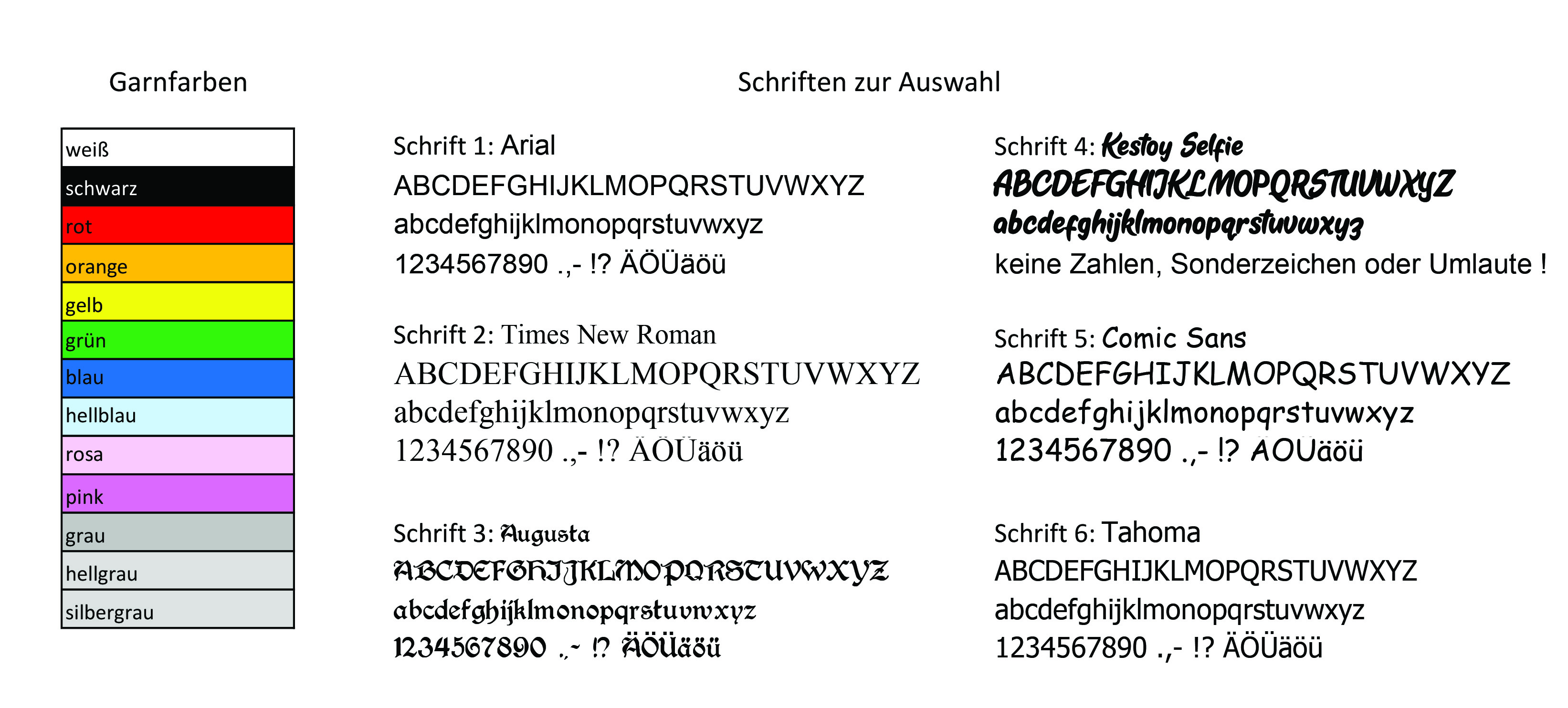 Bitte achten Sie auf die genaue Schreibweise und beachten Sie auch Groß- und Kleinschreibung. Wir sticken genau nach Ihren Vorgaben. Die Schriftgröße Ihres Wunschtextes passen wir natürlich Ihrer gewählten Aufnähergröße an. Dies bedeutet das längere Namen/Texte kleiner gestickt werden müssen. Wenn Sie sich nicht sicher sind ob Ihr Wunschtext für die Aufnähergröße passend ist, können Sie sich ebenfalls unter den Artikelbildern unsere kleine Auflistung ansehen. Hier geben wir Ihnen einen kleinen Anhaltspunkt bezüglich der Buchstabenanzahl und Größe.