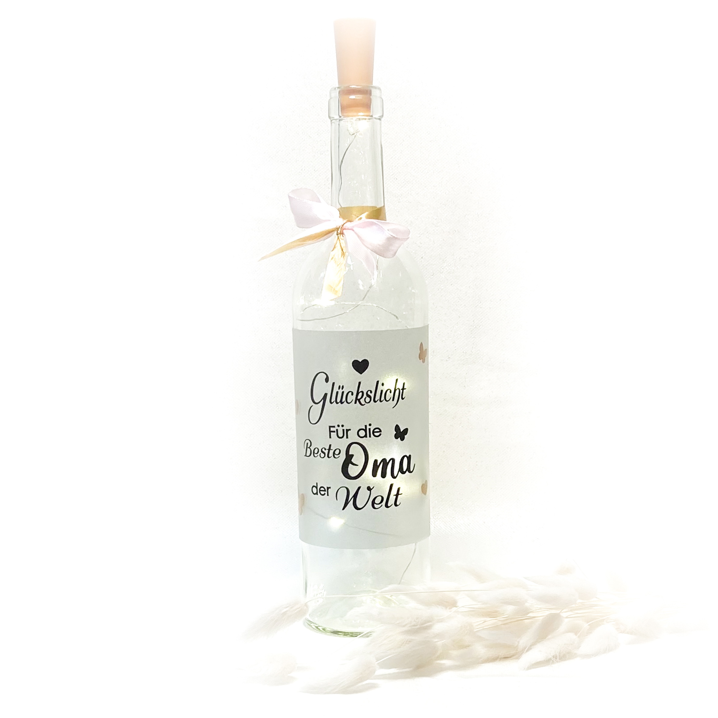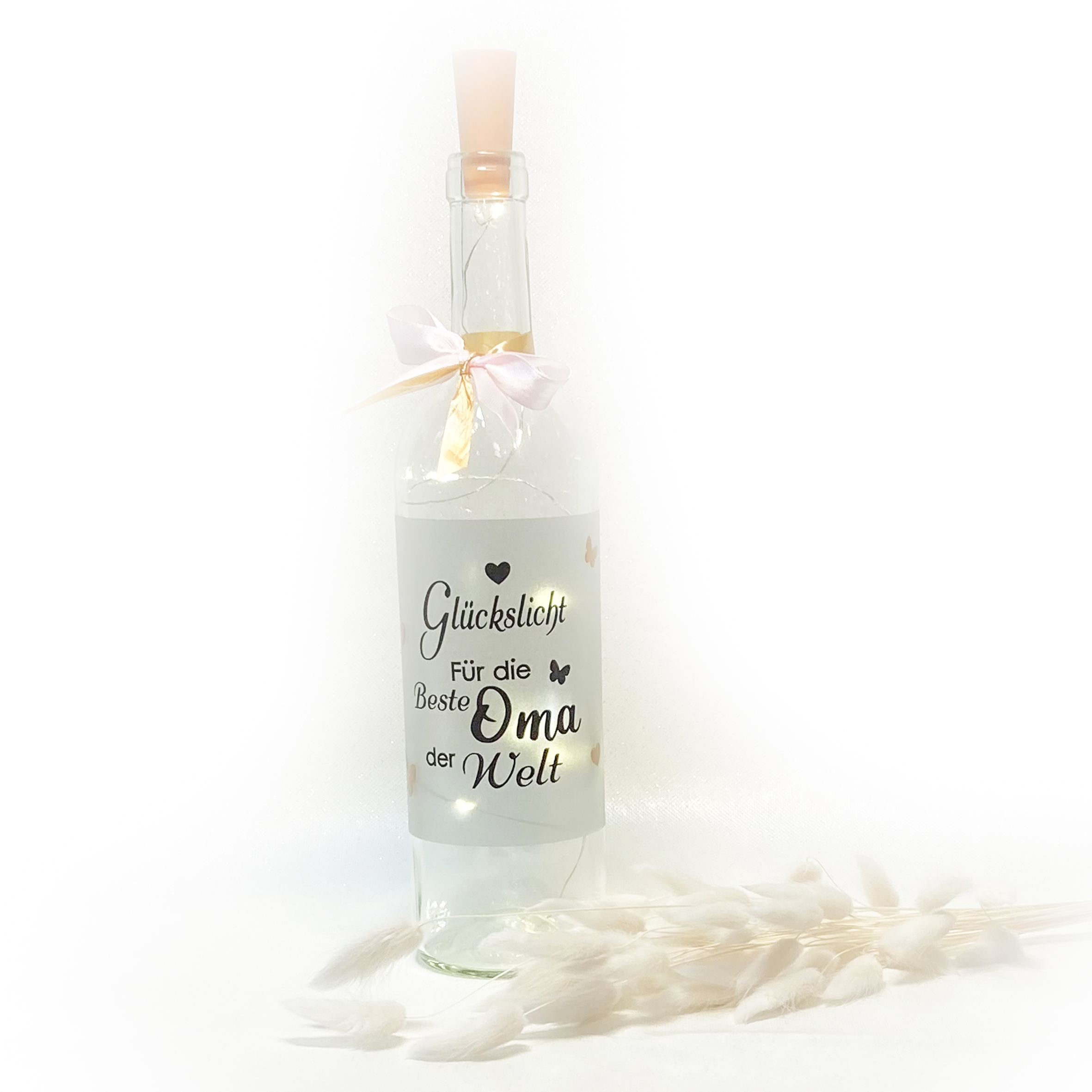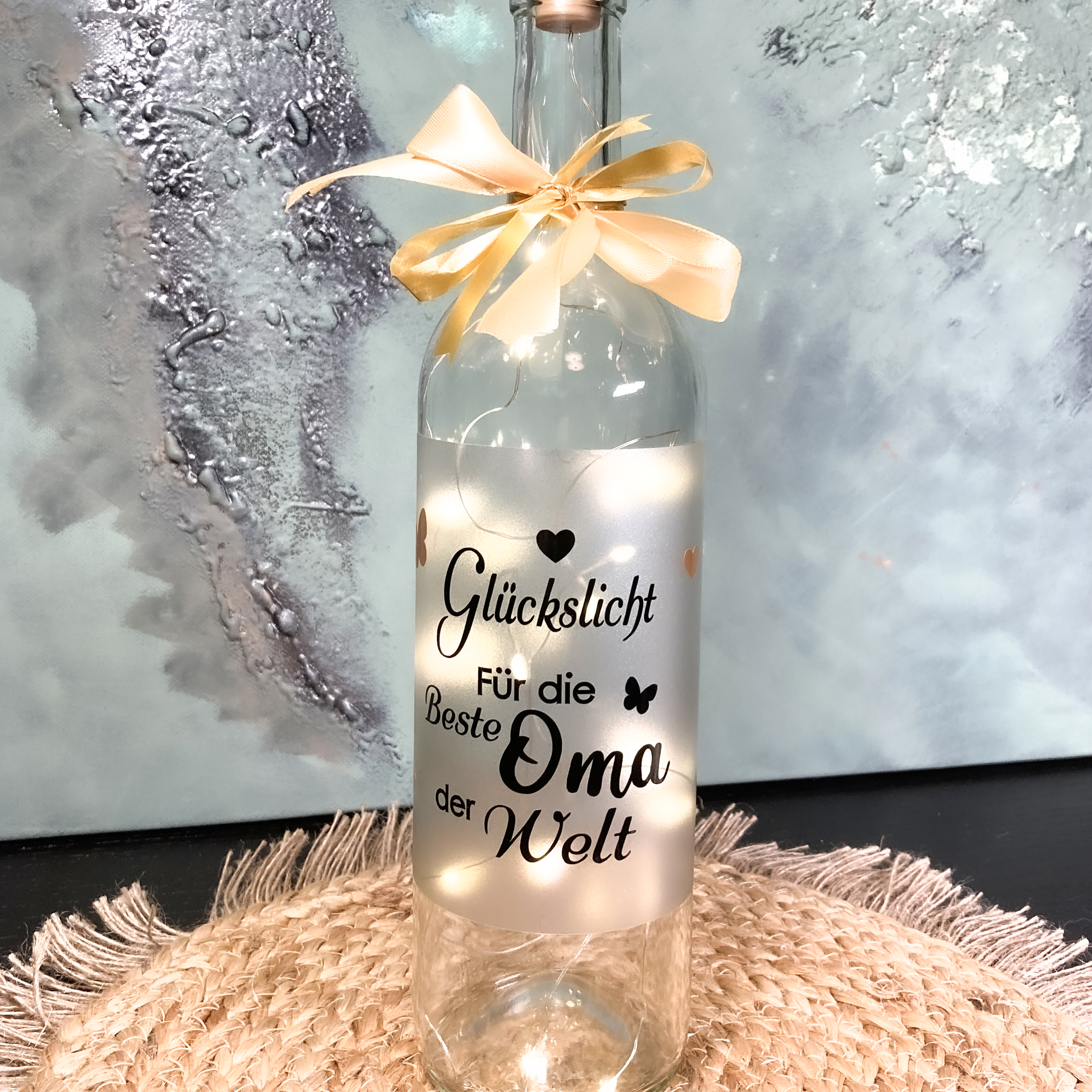 Flaschenlicht " Glückslicht Für die Beste Oma " LED Leuchtflasche