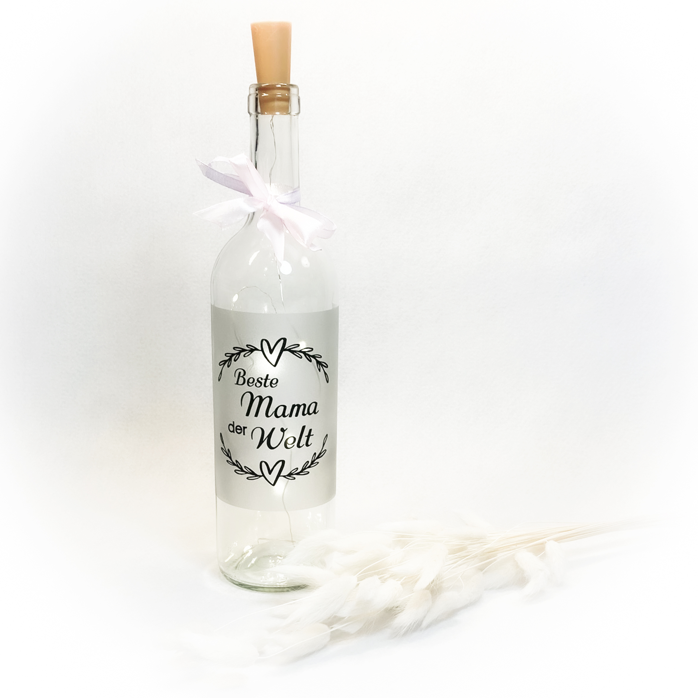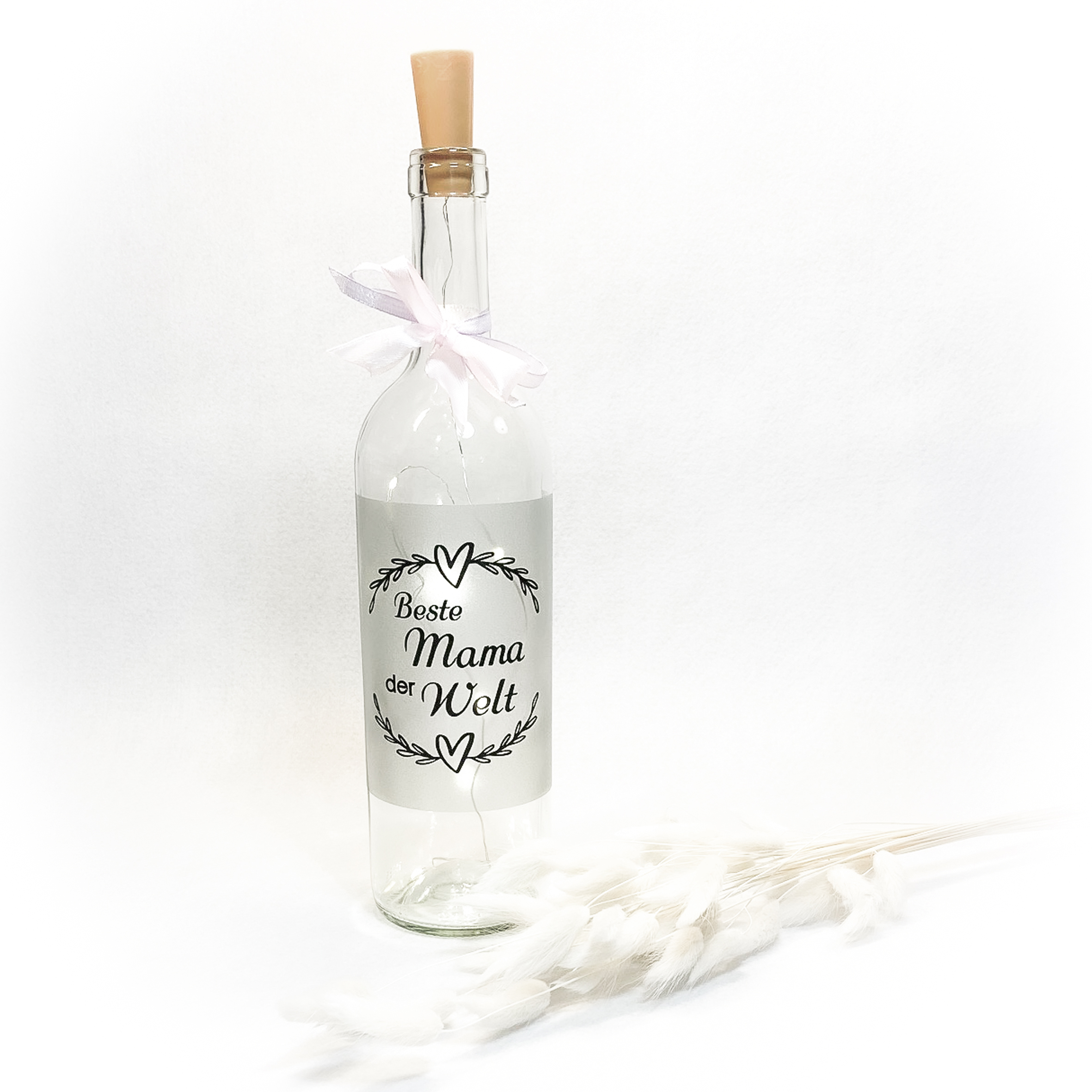 Tolle Geschenkidee für die Mama. LED Flaschenlicht mit hochwertiger Beschriftung
