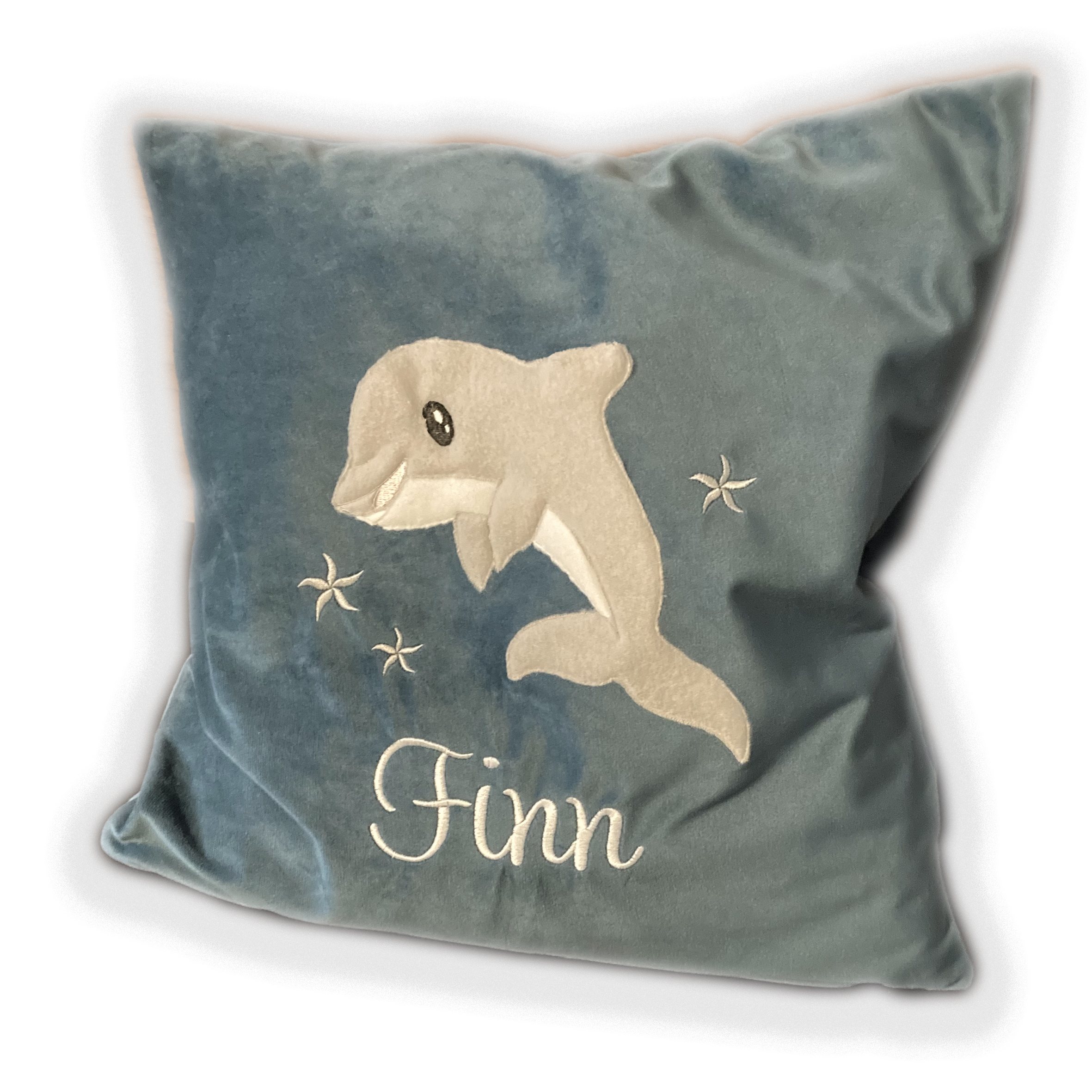Kissenbezug blau (samtig), Kissenfüllung weiß