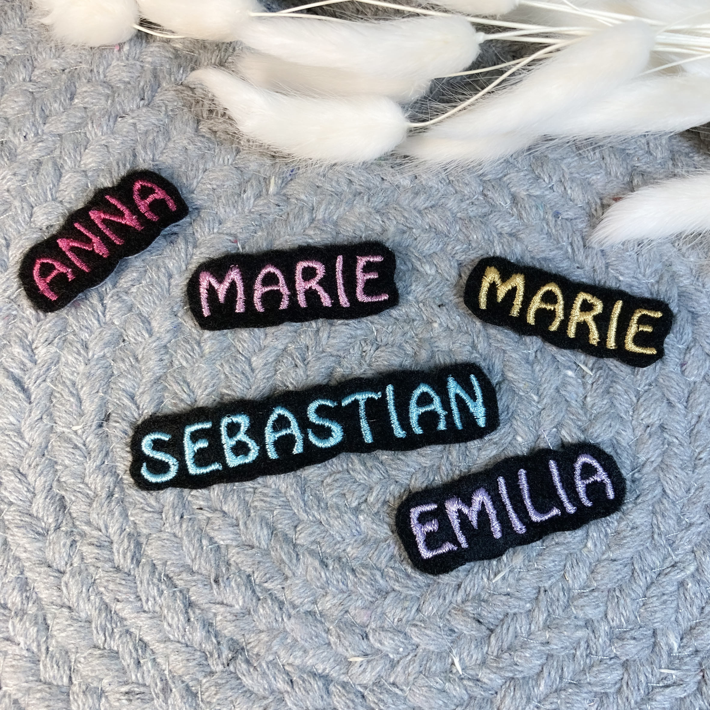 Individuelle gestickte Applikationen mit deinem Wunschnamen oder Text für die