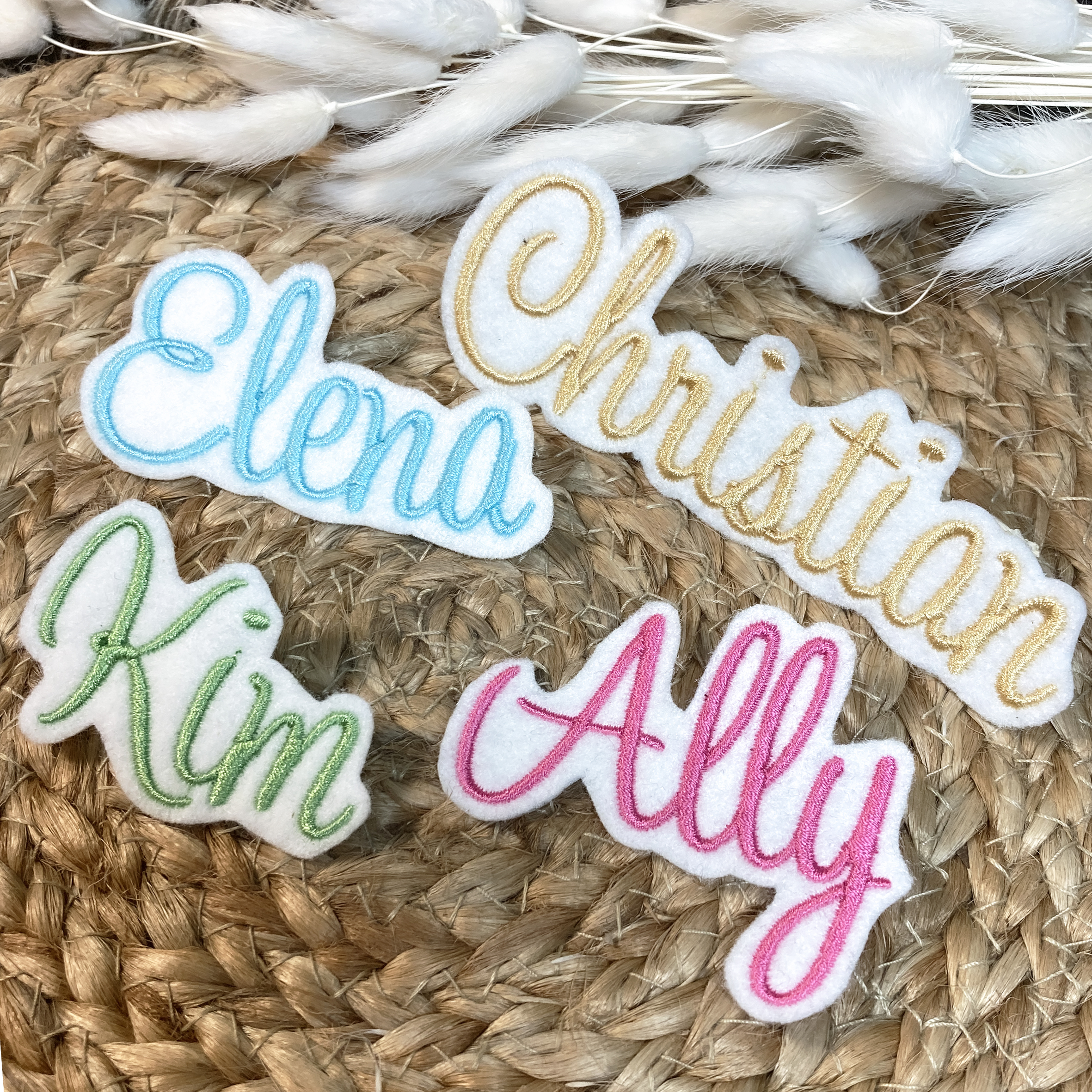 Individuelle gestickte Applikationen mit deinem Wunschnamen oder Text für die