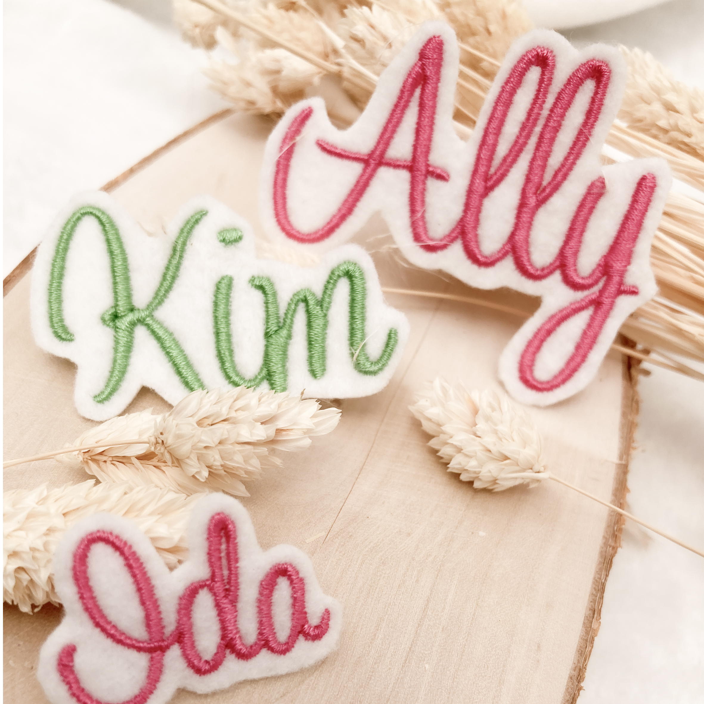 Individuelle gestickte Applikationen mit deinem Wunschnamen oder Text für die