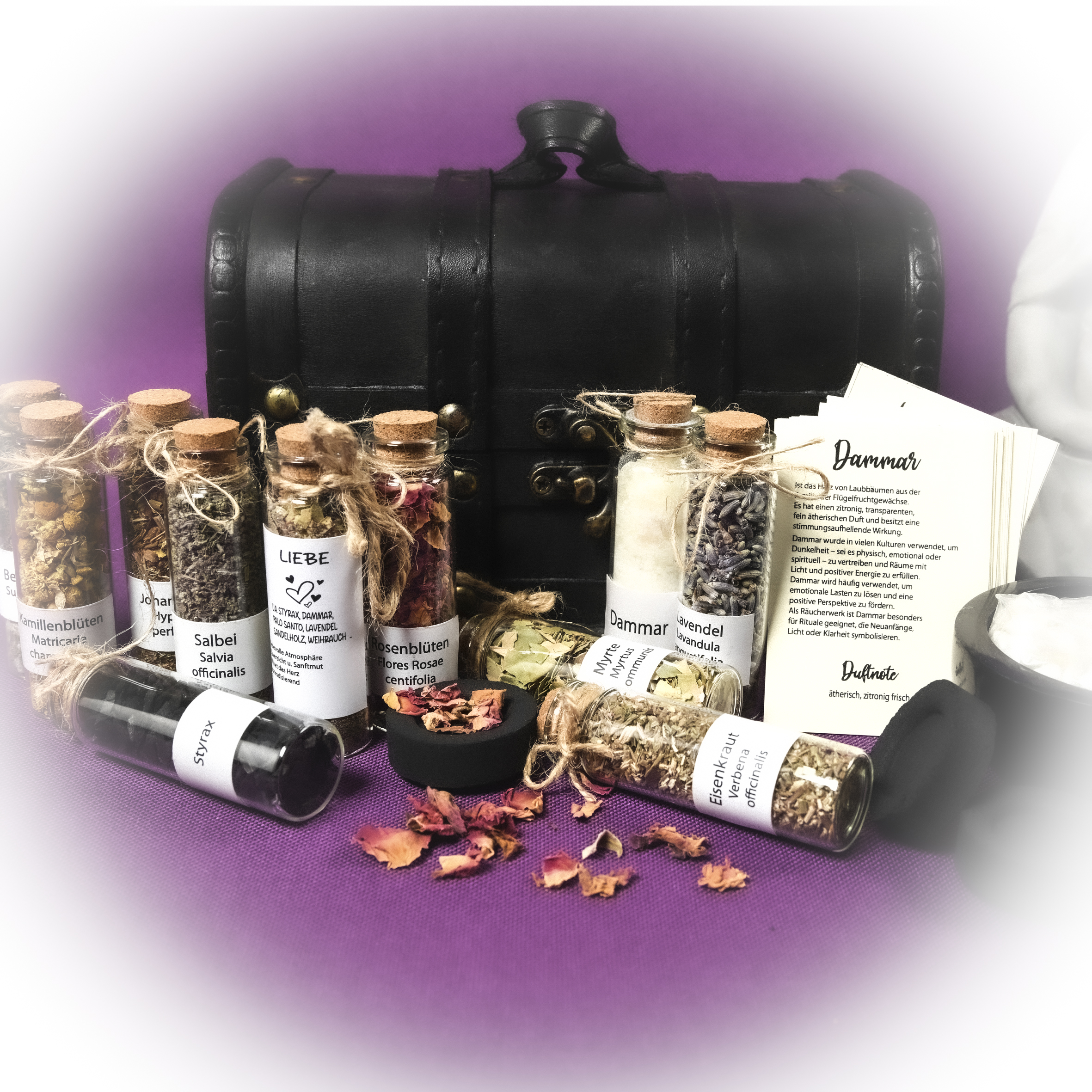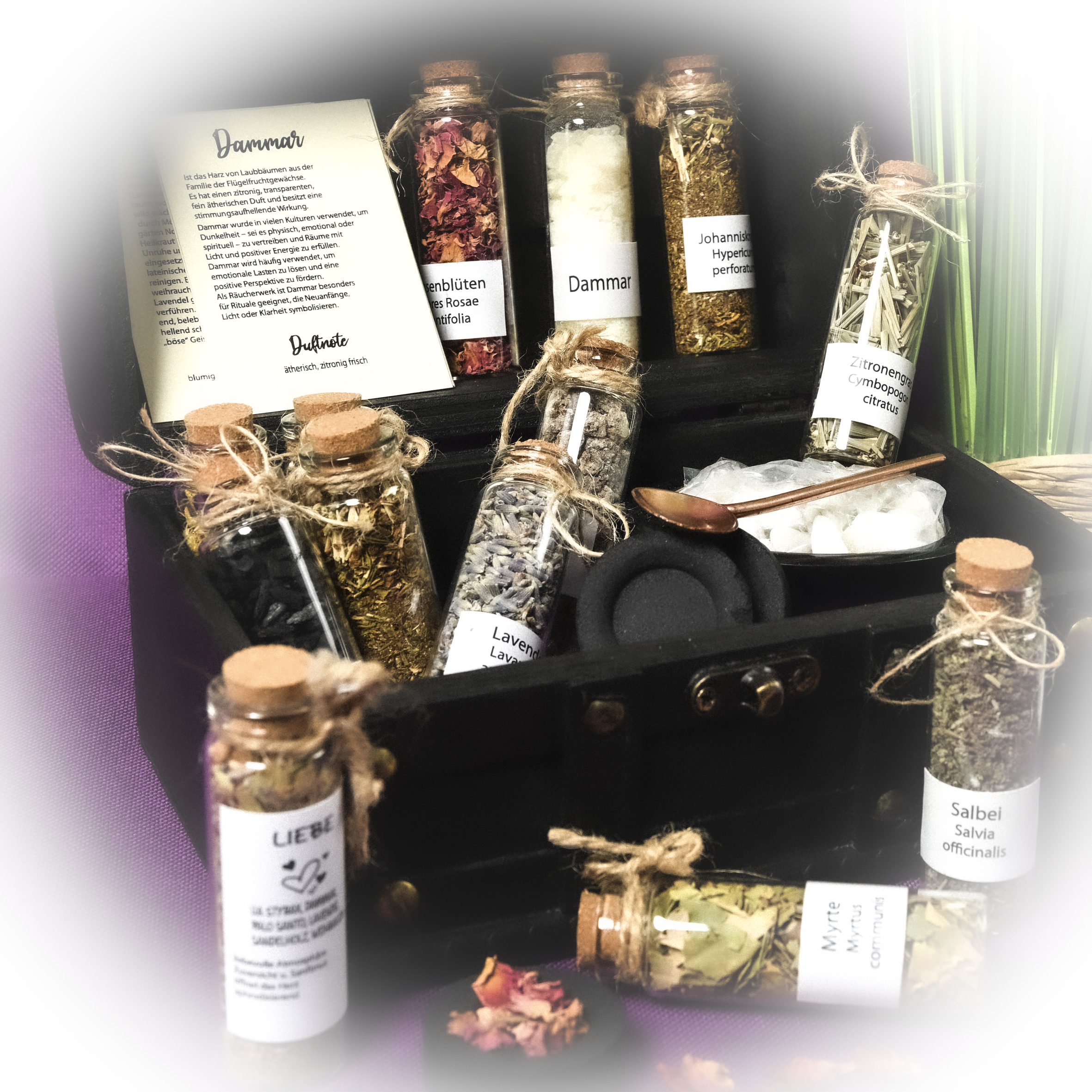 Bestückt mit verschiedenen Harzen, Kräutern & Pflanzen, Räucherkarten,